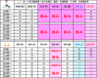 - 2025.12.30 ニュース 2025年12/29㈪~2026年1/11㈰来院状況