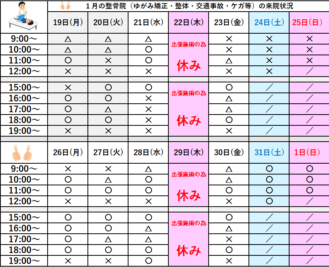 - 2026.1.13 ニュース 2026年1/12㈪~1/25㈰来院状況