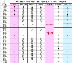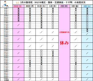 〇3月の暫定的な来院状況は下記Googleカレンダーをご参照ください。