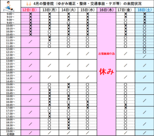 〇4月の暫定的な来院状況は下記Googleカレンダーをご参照ください。
