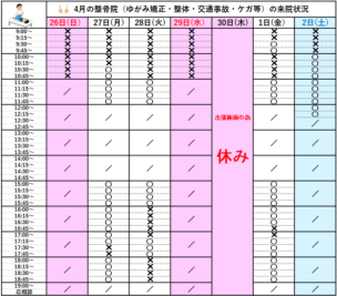 - 2026.4.05 ニュース 2026年4/5(日)~4/11(土)の来院状況