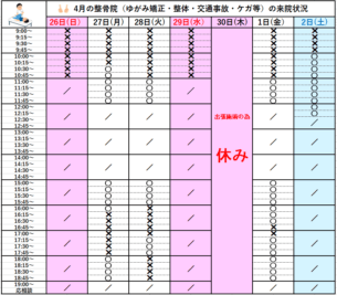 〇4月26日(日)~5月2日(土)来院状況をお知らせします。