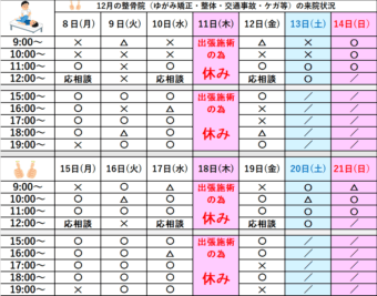 - 2025.12.03 ニュース 2025年12/1㈪~12/14㈰来院状況
